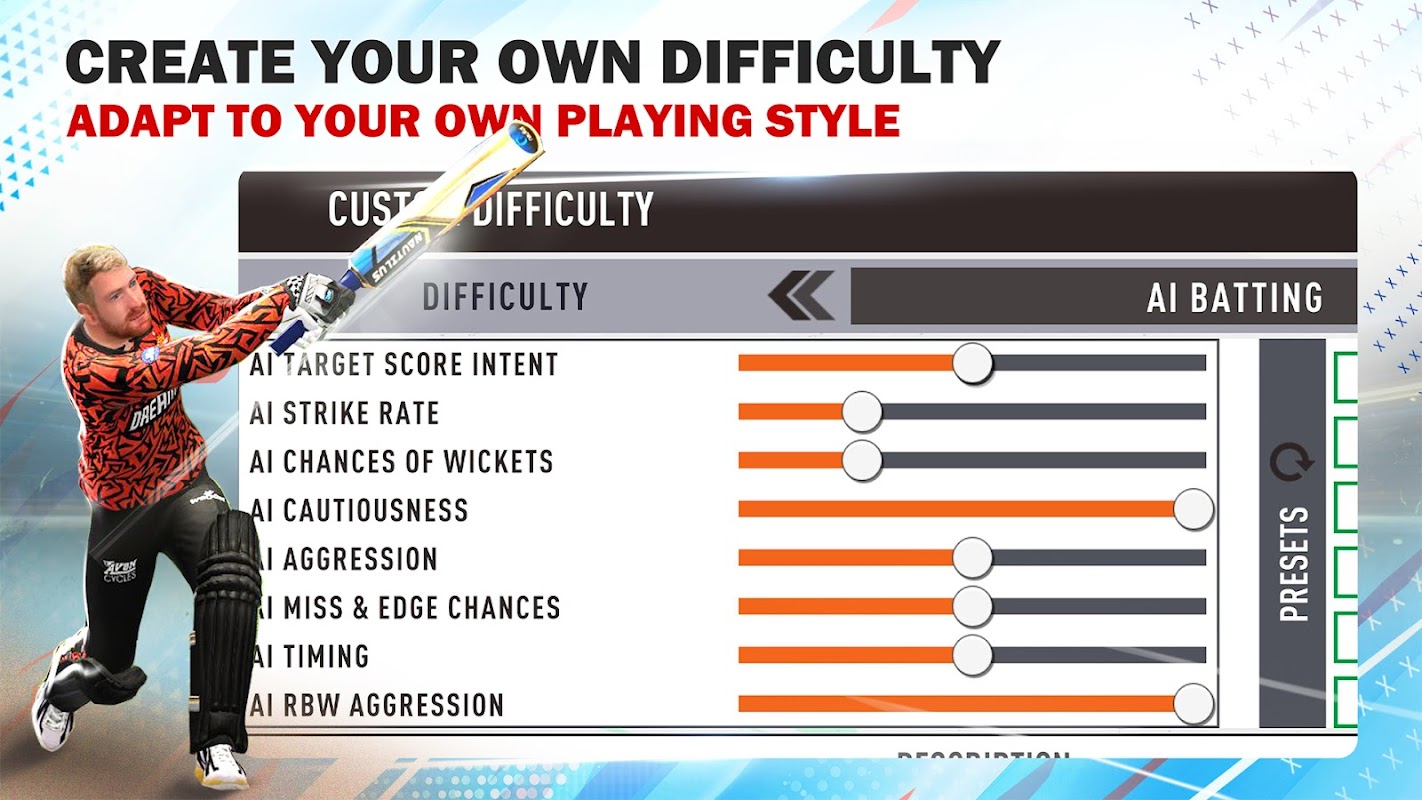 Memperkenalkan Tingkat Kesulitan Kustom! Untuk pertama kalinya dalam game kriket seluler, Anda dapat membentuk AI agar sesuai dengan gaya bermain unik Anda sendiri. Dengan lebih dari 20 elemen permainan yang dapat disesuaikan, Anda dapat menyempurnakan strategi pemukul dan pelempar AI, mulai dari tingkat serangan dan agresi hingga kecepatan lemparan, putaran, dan bahkan akurasi fielding. Baik Anda menginginkan tantangan yang sengit atau pertandingan yang santai, sesuaikan perilaku AI Anda dan nikmati pengalaman kriket yang unik setiap kali Anda bermain!