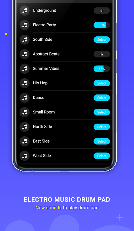 You can use many sound packs for making music beats. Choose an individual theme for beats music. All samples and sounds are developed for you by professional musicians. Beatboxing is easy and exciting even for newbies. You can use drum machine anywhere: at home, in a music studio, in street jams or during a long trip.