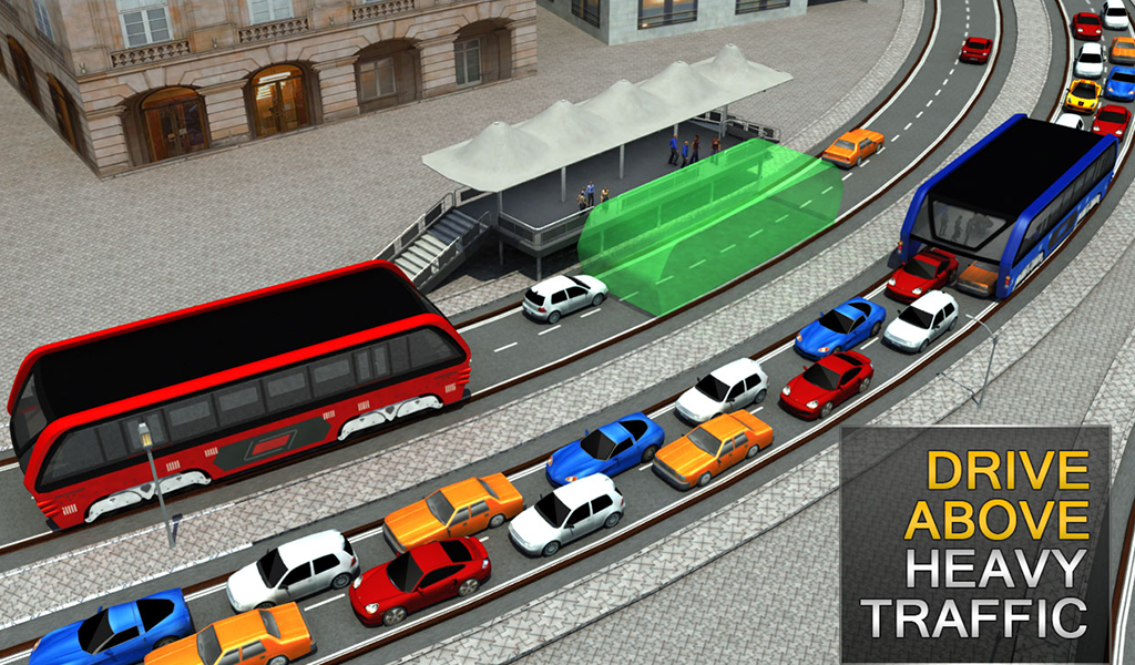 Manuver next-gen straddle otobus untuk mengemudi gila di atas lalu lintas kota. Dalam cuaca bersalju, bermain game nyata Elevated Bus Simulator 3D untuk menavigasi secara bebas di atas kemacetan lalu lintas di kota new york.