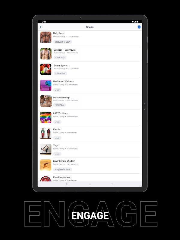 Terlibat dan terhubung dengan penggemar kebugaran gay, atlet, dan penggemar mereka yang berpikiran sama. Mengobrol, berbagi foto, bergabung dengan grup, dan menjalin hubungan pribadi dengan pria lain dengan minat yang sama. Telusuri galeri foto tubuh indah, atlet bugar, dan pria seksi. Buat atau bergabunglah dengan grup pribadi untuk setiap jenis minat atau fetish.