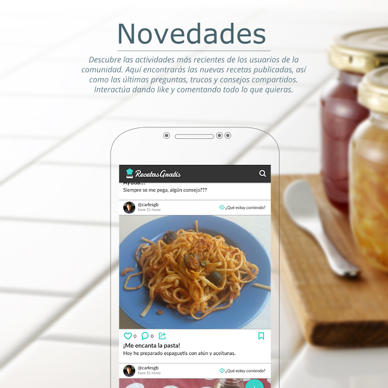 No lo dudes más, hazte con la app definitiva para tu cocina, forma parte de la mejor red social de recetas y encuentra recetas de cocina mexicana, comida española, recetas de cocina italiana, argentina, india, comida peruana, colombiana, comida china, ¡todas las gastronomías del mundo están representadas en esta magnífica aplicación de cocina! Y para que puedas cocinar para todo tipo de usuarios ofrecemos recetas sin gluten, vegetarianas y veganas, sin sal, sin azúcar, sin lactosa y muchísimo más.