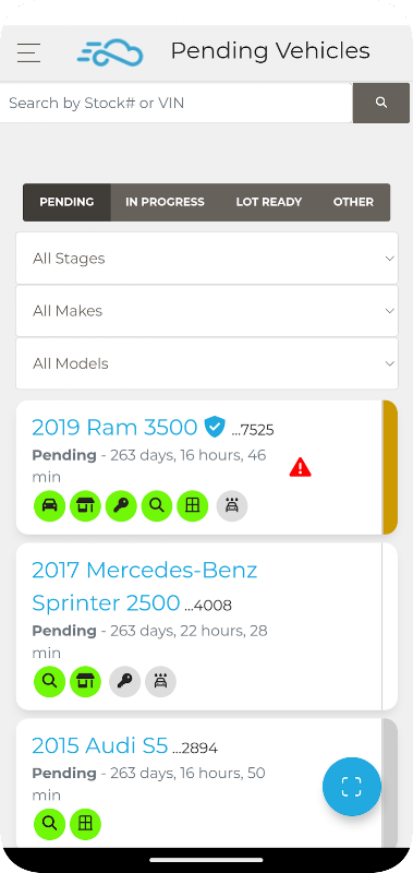 Manajemen Armada: ReconCloud menyederhanakan proses pemantauan kemajuan armada Anda melalui berbagai tahapan seperti bengkel, pengecatan, dan servis. Sistem komprehensif ini memungkinkan Anda melihat pembaruan real-time pada status dan lokasi setiap kendaraan di dealer Anda.