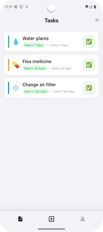 Dari menyiram tanaman dan memberi obat kutu pada anjing Anda hingga perawatan mobil dan membersihkan ketel atau oven, Recurro membuat Anda tetap teratur dan tepat waktu.