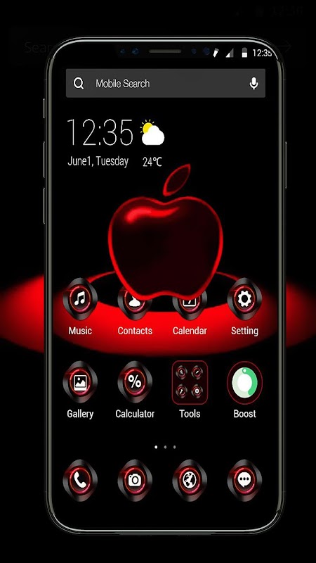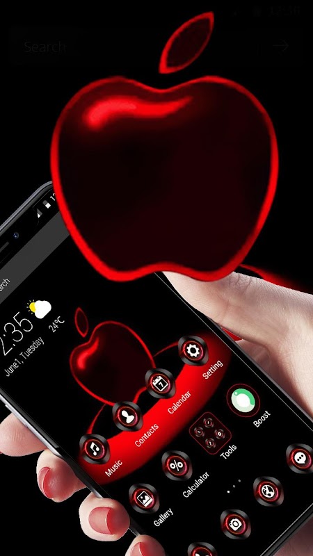 Instal Red Neon Apple Dark APUS Launcher Theme, buat ponsel Anda istimewa.