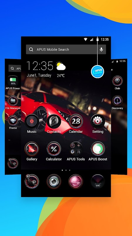 Kecepatan mobil tema, bebas, indah, gaya Android tema, dirancang khusus untuk APUS Launcher. Tema ini meliputi unified icon pack HD, wallpaper yang indah dan membantu membuat telepon anda pribadi dan bergaya.
