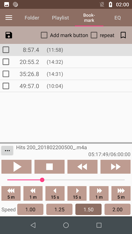 ・ Jika Anda mengetuk file '.cue' (isyarat + wav) di tab folder, kontennya tercermin dalam daftar bookmark