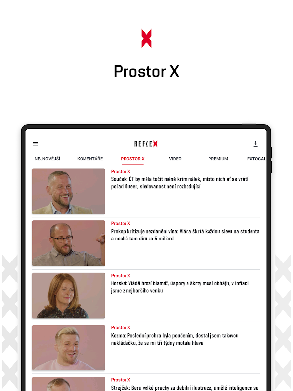 Aplikasi ini membawa konten gratis dari reflex.cz dan opsi baru untuk membeli Premium X berbayar.