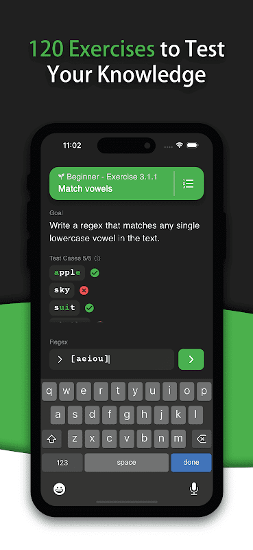 Dapatkan kekuatan penuh Ekspresi Reguler dengan pengalaman belajar interaktif yang dirancang untuk semua tingkat keahlian. Baik Anda seorang pemula yang menjelajahi pola dasar atau ahli yang menguasai teknik tingkat lanjut, aplikasi ini menawarkan pelajaran terstruktur, latihan interaktif, dan tantangan dunia nyata untuk membangun keterampilan regex Anda.