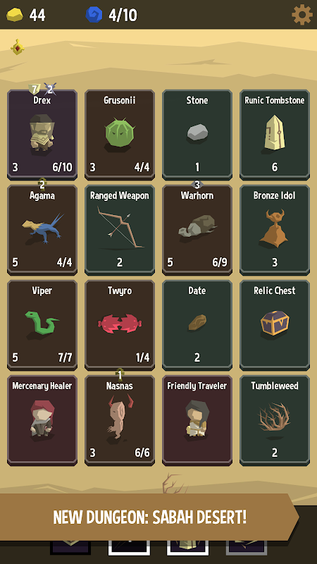 Kumpulkan relik, jelajahi ruang bawah tanah, dan kalahkan bos dalam permainan kartu roguelike ini!