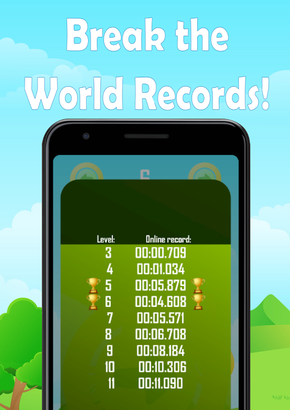 Urutan lingkaran muncul dalam urutan acak di layar Anda. Ingat atau hafalkan jalan dan hubungkan lingkaran secepat mungkin. Waktu sudah mulai dihitung saat lingkaran muncul. Kurangi waktu itu dengan penggeser sebanyak yang Anda bisa. Apa batasanmu? Gerakan menggesek didukung!