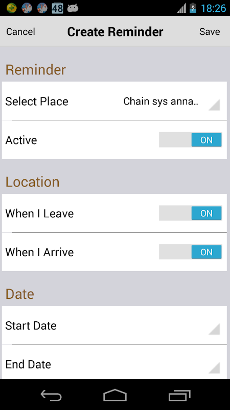 One of the key features of this app is you can specify the edge of the location by marking the radius from the exact spot. This marking would act as a geofence and this enables to give an alert as soon as you get closer to the specified location. The geofence for the location can be set in meters, kilometers and miles.