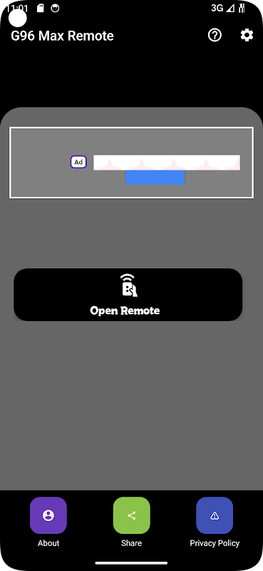 Remote untuk G96 Max adalah aplikasi independen yang dikembangkan oleh Bishnu International, dan bukan produk resmi G96 Max. Aplikasi ini dibuat untuk menawarkan kepada pengguna solusi kendali jarak jauh alternatif untuk kotak TV G96 Max. Itu tidak didukung, didukung, atau berafiliasi dengan G96 Max atau perusahaan induknya. Semua merek dagang dan merek dagang terdaftar yang disebutkan dalam aplikasi adalah milik dari pemiliknya masing-masing.
