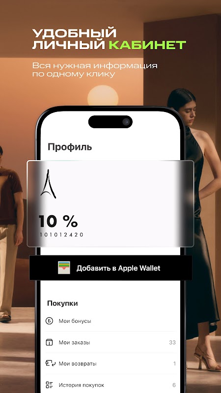 Semua informasi tentang pembelian Anda, status akun bonus, menambahkan produk ke favorit, kemampuan untuk melacak perubahan harga untuk model yang dipilih dan peringatan tentang kedatangan baru dan promosi yang menguntungkan.