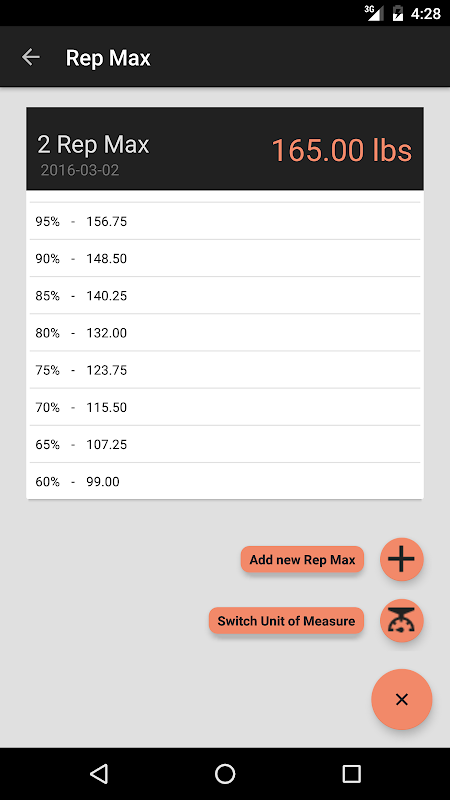 Melacak Anda Rep Max. Rep Max Tracker besar untuk angkat berat, Olimpiade angkat dan Crossfit. Setelah Anda menyimpan max rep Anda, melihat persentase sehingga Anda tidak perlu menghitung mereka.