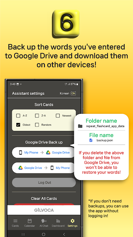 Integrasi Google Drive: Cadangkan dan pulihkan data pembelajaran Anda dengan aman melalui Google Drive.