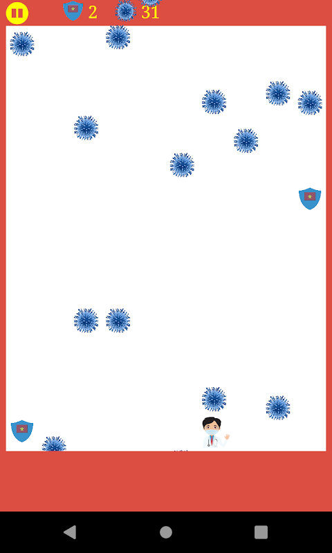 The system creates the virus in any location. Your representative is a doctor. Manually move doctors so they don't collide with the created system viruses. Avoid the virus, you get one point. The item creation system protects the doctor from viruses, touches and protects the doctor one more turn to revive. To move the doctor to the right click on the right side of the screen, to the left you click on the left side of the screen. The game will be over when your doctor touches the viruses of the system. Eat as much protective gear as possible so the doctor can avoid the most viruses. good luck.