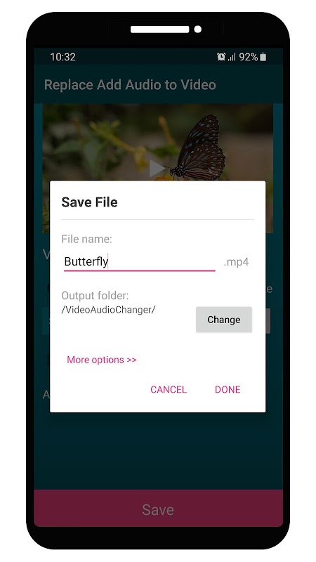 - Dapat mengganti audio file video dengan musik atau lagu.