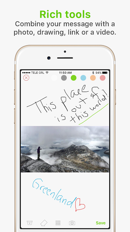 Combine your text messages with a photo, a video, a link or get creative by using the drawing tools.