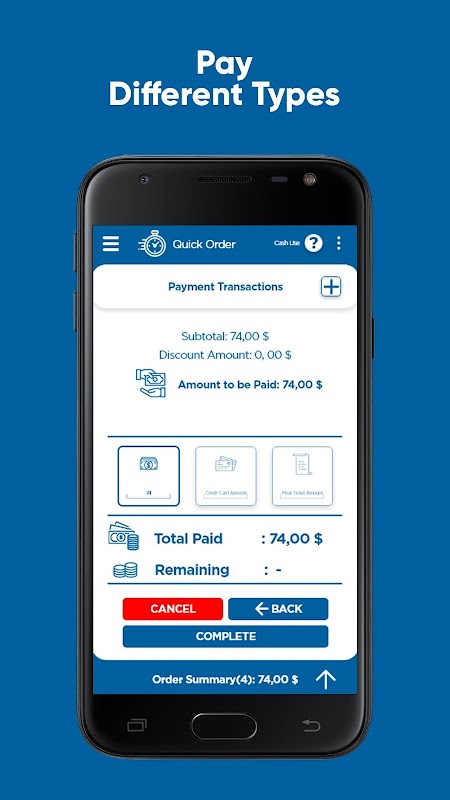• Memungkinkan pelayan Anda untuk menerima pesanan dengan cepat dan tanpa kesalahan melalui perangkat seluler,