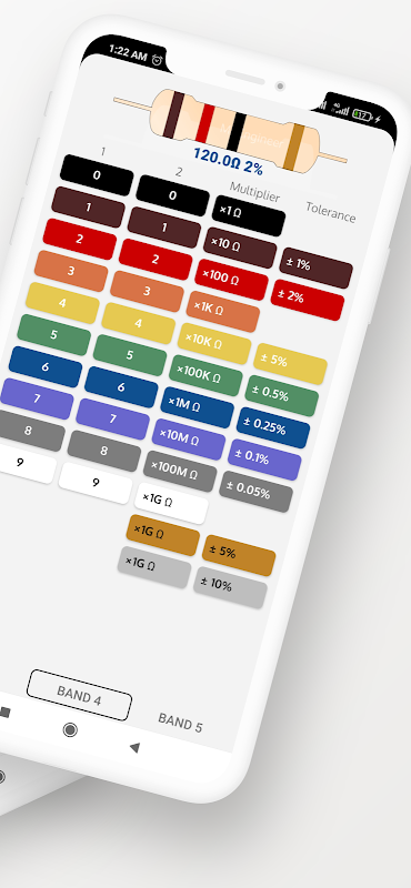 Kalkulator kode warna aplikasi ini menghitung resistansi resistor