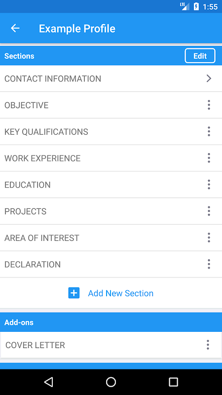 Membuat aplikasi resume saya gratis, aplikasi pembuat resume yang dilengkapi dengan Sampel Profil yang mencakup data yang telah ditetapkan di dalamnya, yang memungkinkan Anda untuk membuat resume sangat mudah dengan aplikasi lamaran pencipta ini.