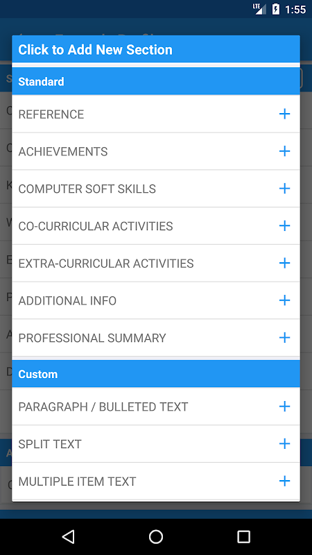 Cerdas Lanjutkan Builder, pembuat resume profesional memungkinkan Anda untuk menambahkan sebanyak bagian yang diperlukan dan Anda juga dapat mengedit judul bagian dalam pembuat resume yang sempurna ini.