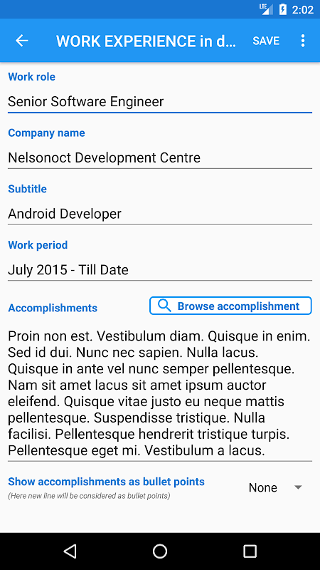 Better app functionality to create resume quickly.
