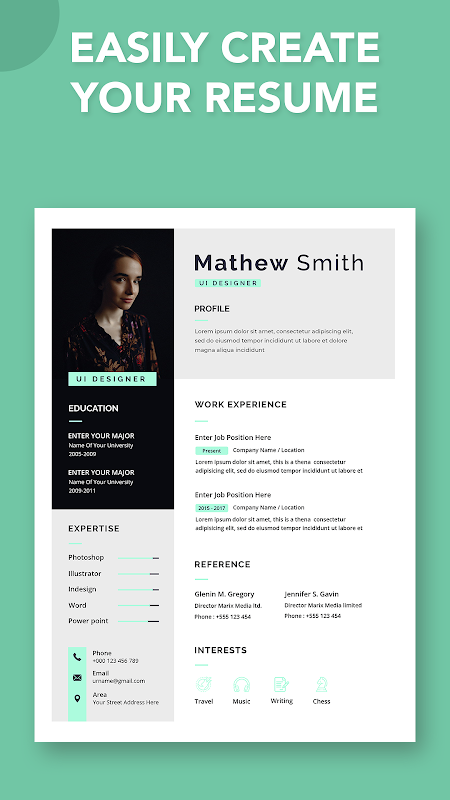 Pembuat Resume - Pembuat CV, Template Pembuat adalah pembuat resume profesional.