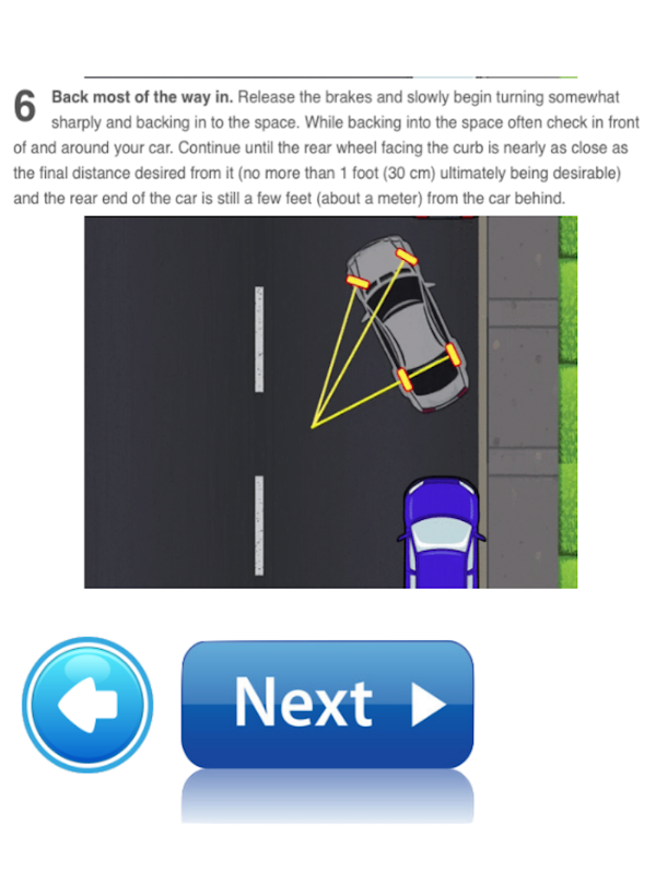 Learn Reverse Parallel Parking is a driving tutor app which will help you to master the difficult art of reverse parallel parking.