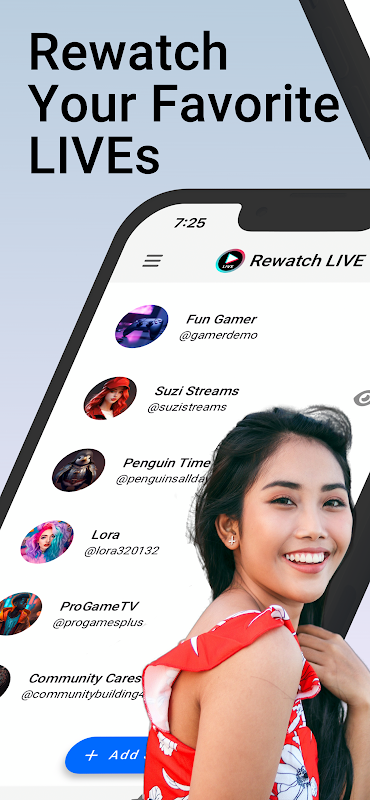 - Tambahkan beberapa pembuat media sosial dan live streamer favorit Anda dengan mudah, Rewatch LIVE akan merekam obrolan video langsung mereka secara otomatis. Bahkan streaming langsung TT Anda sendiri dapat direkam dan disimpan untuk Anda putar ulang nanti. Ini perekam langsung TT pribadi Anda.