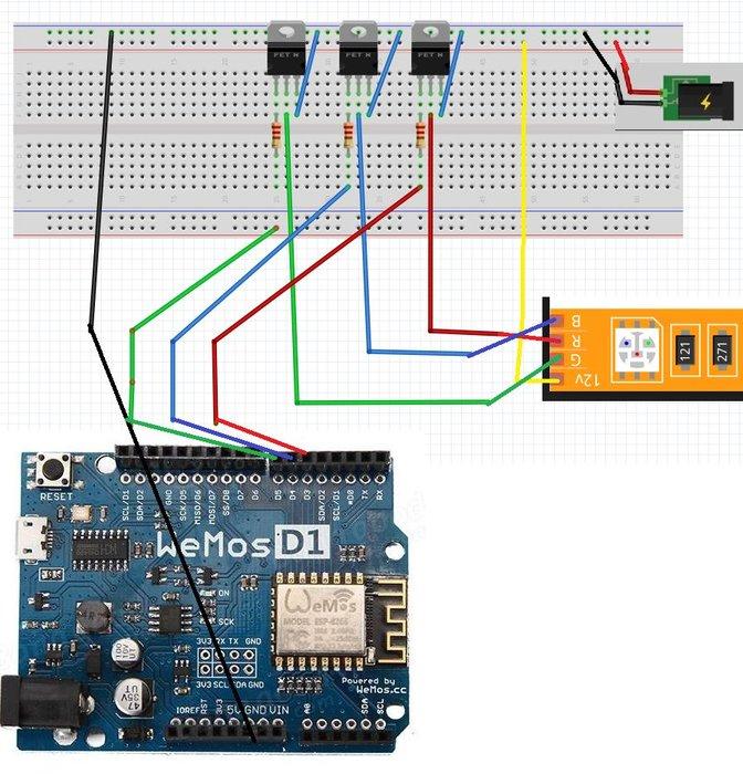 tautkan dengan konstruksi sebagai contoh https://www.instructables.com/id/Desk-Led-Rgb-Lamp-Controll-WeMos-D1android-AppWiFi/