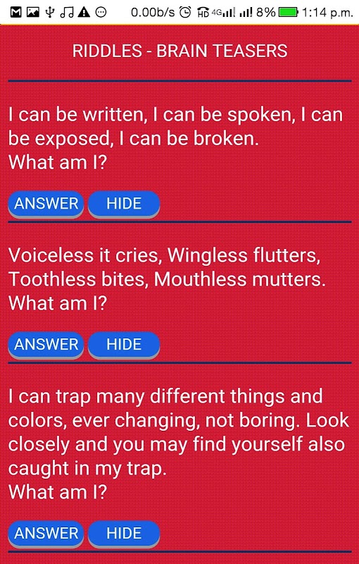 Do you like to enjoy reading English riddles and logic brain teasers . If yes this amazing app is for you.