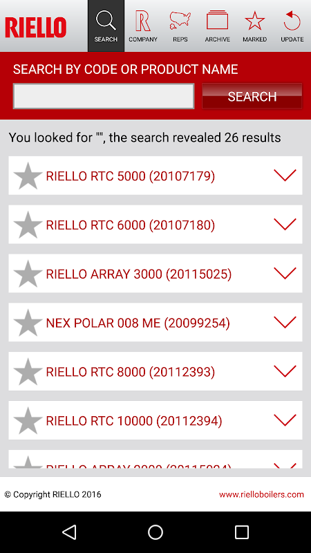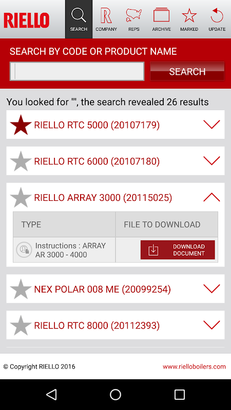 The use of this APPLICATION is very simple and easy: it makes you completely independent; free from any papers, at any time and in any place. It also allows the Authorized Technical Service to have direct access to all Riello product manuals.Just enter the code number or product name and quickly access INSTRUCTION MANUALS and SPARE PARTS CATALOGUES complete with codes, images, exploded views, tables, and detailed descriptions. Highlight the favorite items you use frequently; download and store on your device all the documents you want to consult offline. A brand with history, present on the Italian market since the Twenties and on the American market since the Eighties; Riello Group is today a worldwide Manufacturer of burners and a European player in the market of heating and cooling products and services. For Riello, "Energy" has been the cornerstone concept of its own industrial policy for over 90 years, resulting in a daily search for new solutions to ensure, with maximum efficiency, the required comfort while respecting the environment surrounding us all.