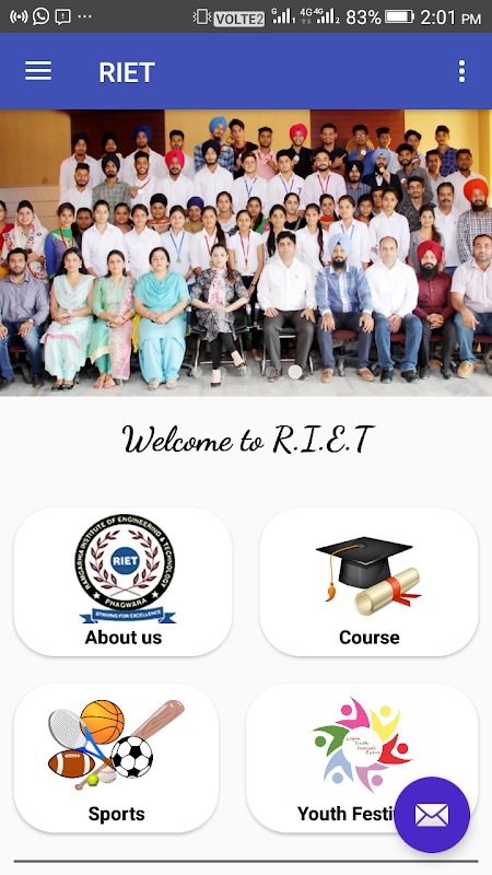 With R.I.E.T. College App every one can view all the details about our Courses, sports events and others. All students all Ramgarhia Institute of Engineering and Technology can get all online notification regarding events and any other occasions . It also has facility where students after login their account they can able to get information regarding seminars , training & placements and many more.