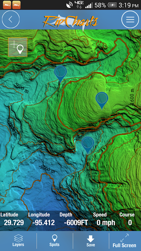 RipCharts memungkinkan seseorang untuk melihat data satelit untuk menentukan zona memancing menguntungkan