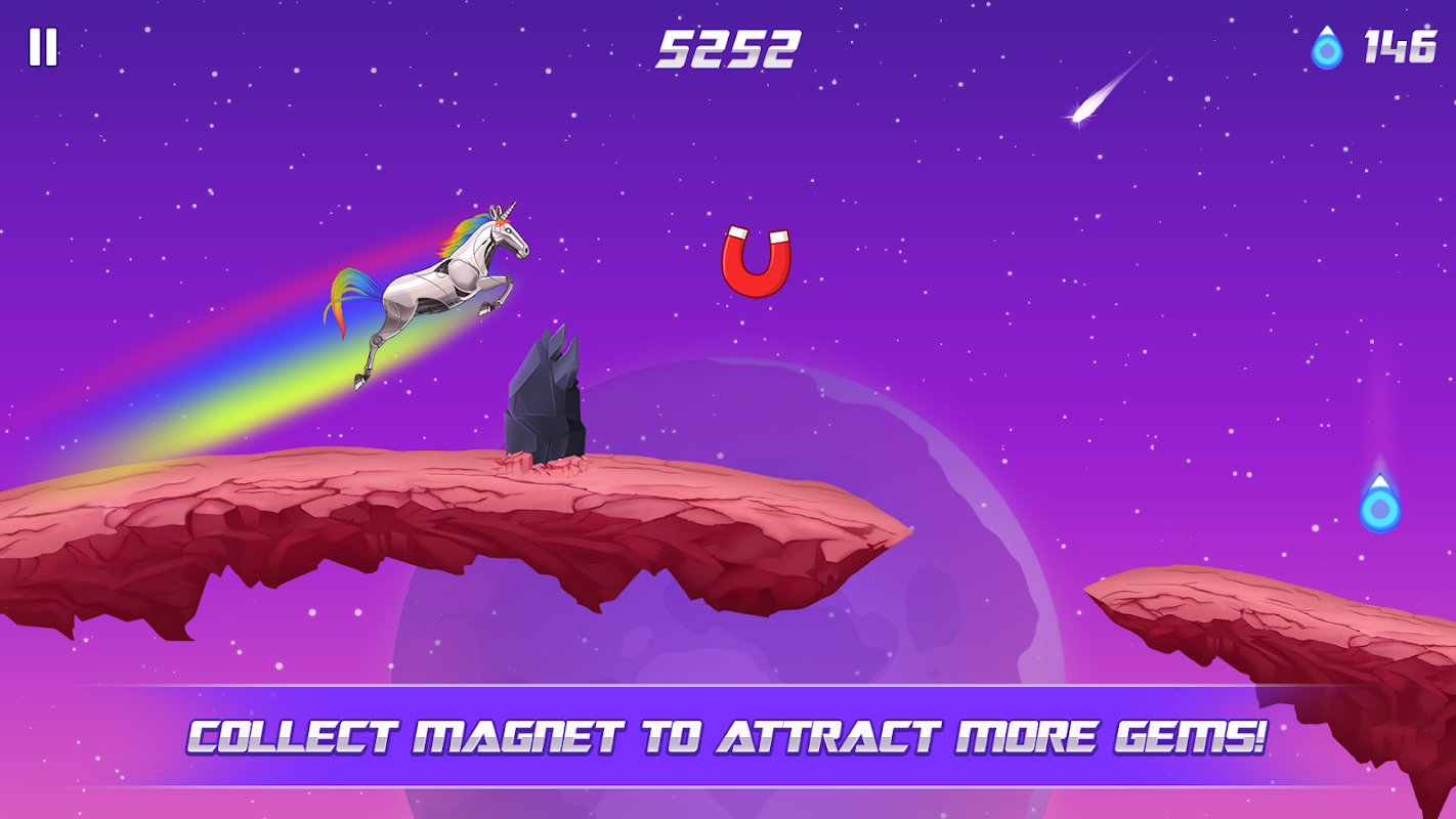 Anda mendapatkan tiga nyawa di Robot Unicorn Dash - Attack 2 dan idenya adalah Anda mencoba melakukan perjalanan sejauh yang Anda bisa dalam kehidupan ini. Di sepanjang jalan, kamu perlu mengambil bintang biru, yang nantinya bisa ditukar dengan power-up dan upgrade untuk membuat unicorn robotmu menjadi mucikari. Bintang dapat ditambahkan untuk mendapatkan item seperti tubuh baru, sayap, tanduk, surai, dan ekor.