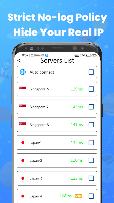 VPN Roket adalah VPN Roket super! Ini akan secara otomatis terhubung ke server vpn tercepat. Rocket VPN memiliki lebih dari 100.000 alamat IP untuk lebih dari 2000 server vpn gratis dan server streaming. Satu klik untuk terhubung ke AS, Inggris, Korea, Singapura, India, Jerman, Prancis, dll.
