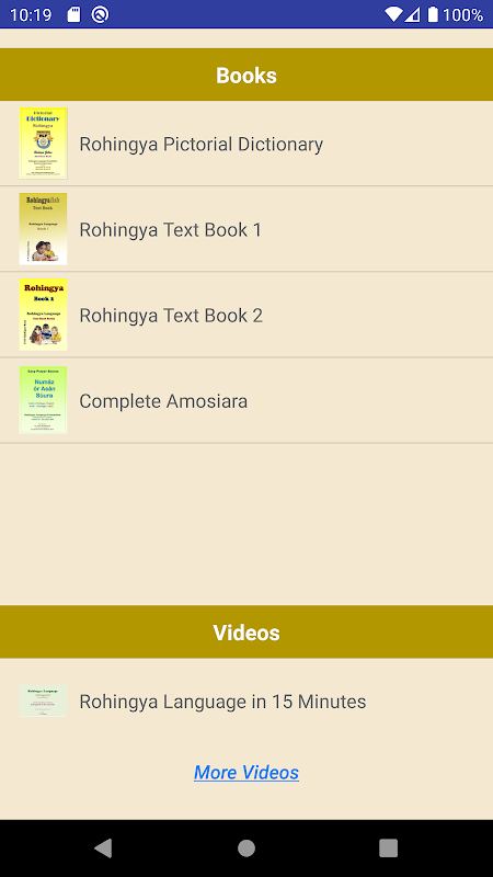 Aplikasi ini juga menampilkan kata harian untuk membantu Anda menghafal satu kata bahasa Inggris setiap hari. Selain itu, Anda dapat mempelajari abjad Rohingya menggunakan tabel suara, berbagai buku teks, dan video.