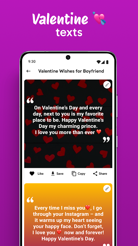 💖 Bagikan, Salin, dan Favorit: Simpan pesan teks cinta favorit Anda dan sms cinta untuk akses cepat nanti. Bagikan langsung dari aplikasi, atau salin ke clipboard Anda hanya dengan satu ketukan.