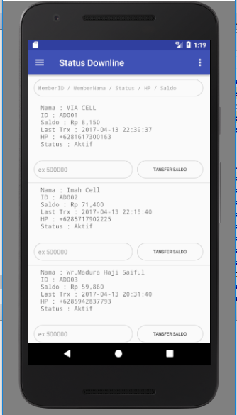Transaksi pulsa berbasis Android. Dengan apliaksi ini transaksi menjadi jauh lebih stabil, cepat, aman dan efisien.