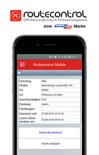 Routecontrol Aplikasi Seluler, untuk pengawasan seluler kendaraan Anda.