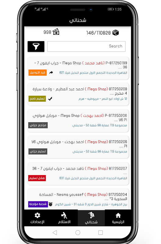 لمتابعة الشحنات الحسابات