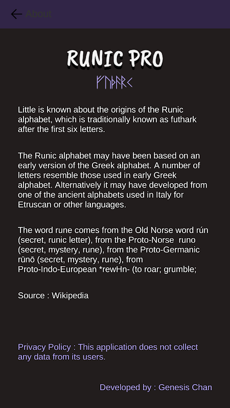 Belajar membaca dan menulis rune di Runic Alphabet dengan aplikasi pendidikan ini.