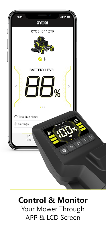 RYOBI™ Riding Mower App berpasangan dengan RYOBI™ Riding Lawn Mower Anda yang kompatibel