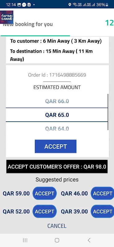 Kapten memberikan opsi hingga 4 pengemudi terdekat pertama untuk menawar di setiap pemesanan.