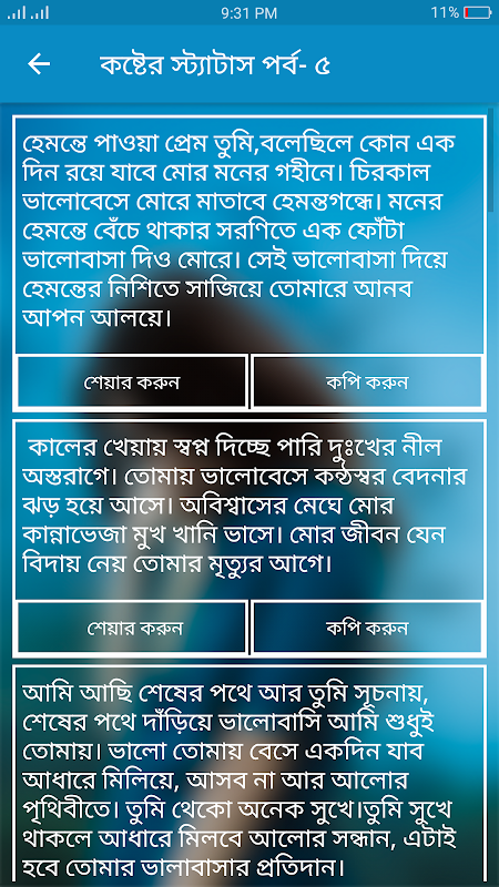 There are several emotional distress statuses in the Bengali distress status app, I hope you will like the emotional sad status 2022 app very much. You can send status to anyone from the sad Status app, you can copy it.