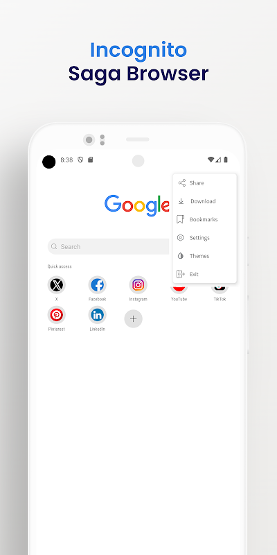 Saga Incognito Browser adalah browser pribadi untuk Android dengan banyak tab dan dukungan video, memungkinkan Anda menjelajah internet secara pribadi.