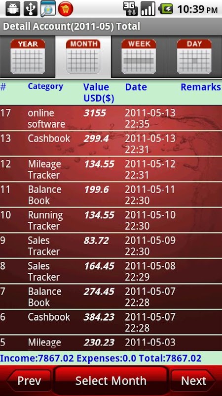 • Yearly/Monthly/Weekly/Daily summary
