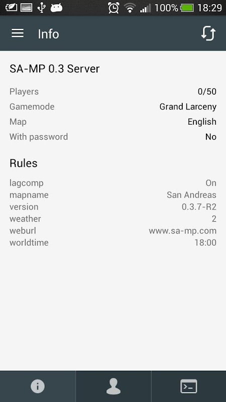 Приложение позволит вам подключиться к RCON консоли SAMP сервера.
