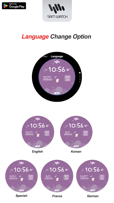 Anda dapat membedakan bahasa berdasarkan nama merek SamWatch.